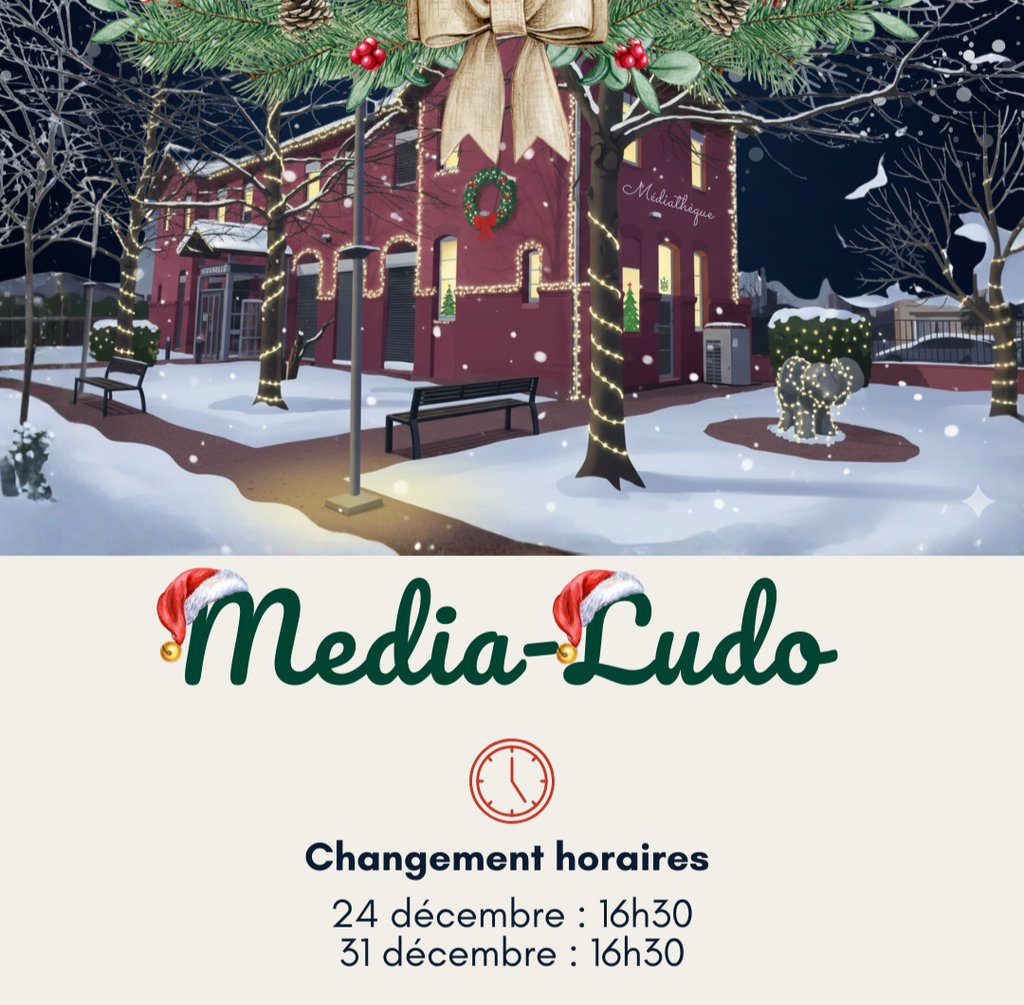 - Changement d'horaire (fermeture anticipée à 16h30) : Mercredi 24 décembre et Mercredi 31 décembre.