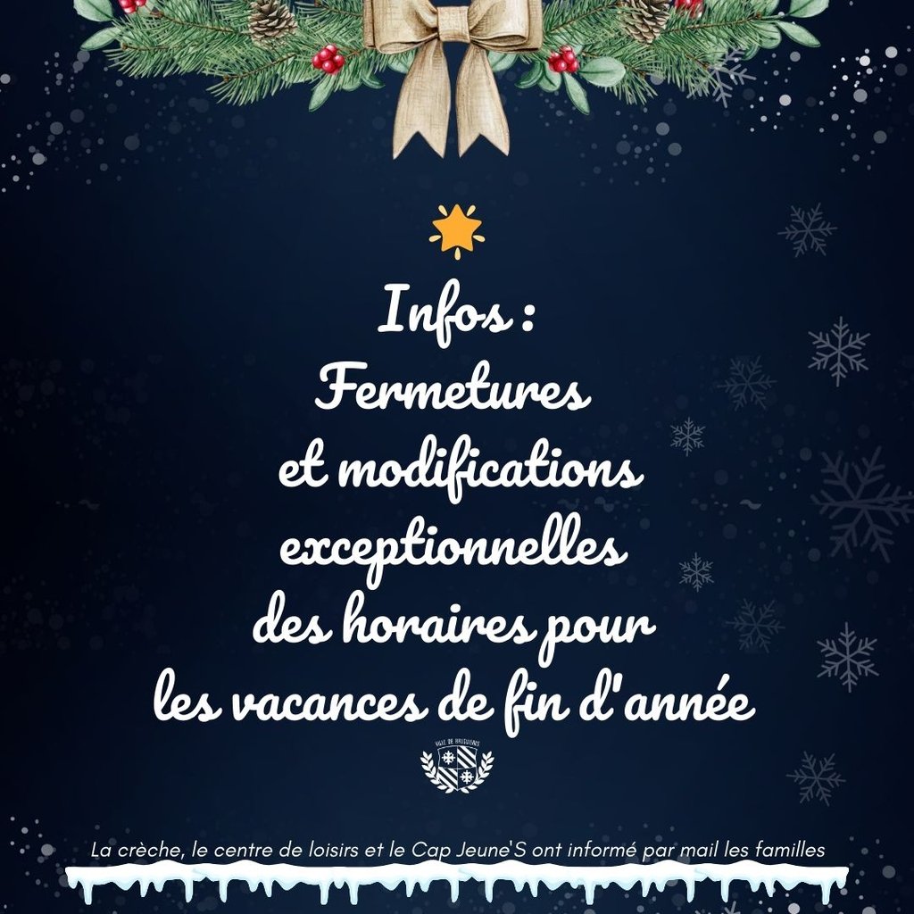 INFORMATIONS ℹ️ - Fermetures et modifications exceptionnelles des horaires pour les vacances de fin d'année ! 🎄