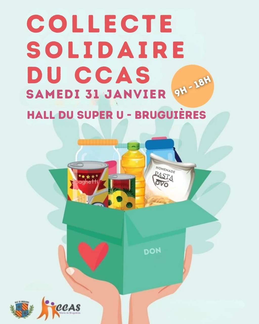 Le CCAS de Bruguières organise une nouvelle collecte solidaire. Les denrées collectées seront redistribuées aux bénéficiaires des colis alimentaires. Nous comptons sur votre générosité.