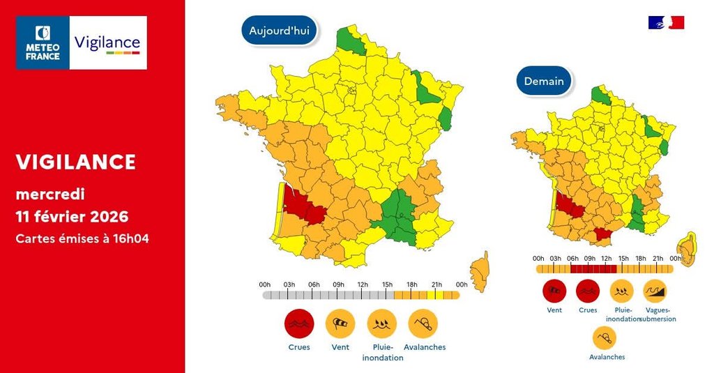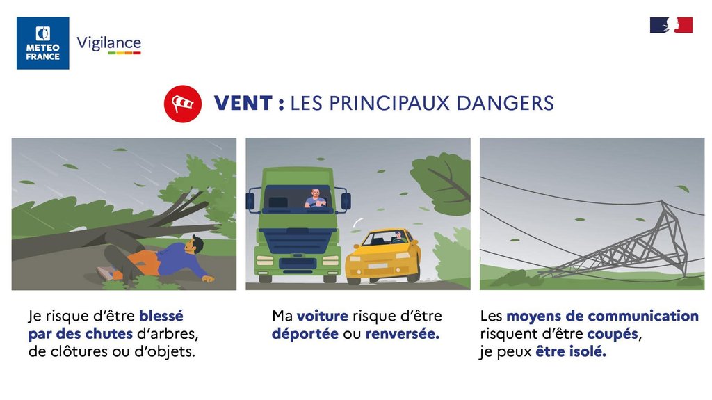 ⚠️ Il convient de suivre les consignes des autorités, respecter les conseils de comportements et consulter la carte de Vigilance pour connaître la chronologie, sur l'application mobile de Météo-France.