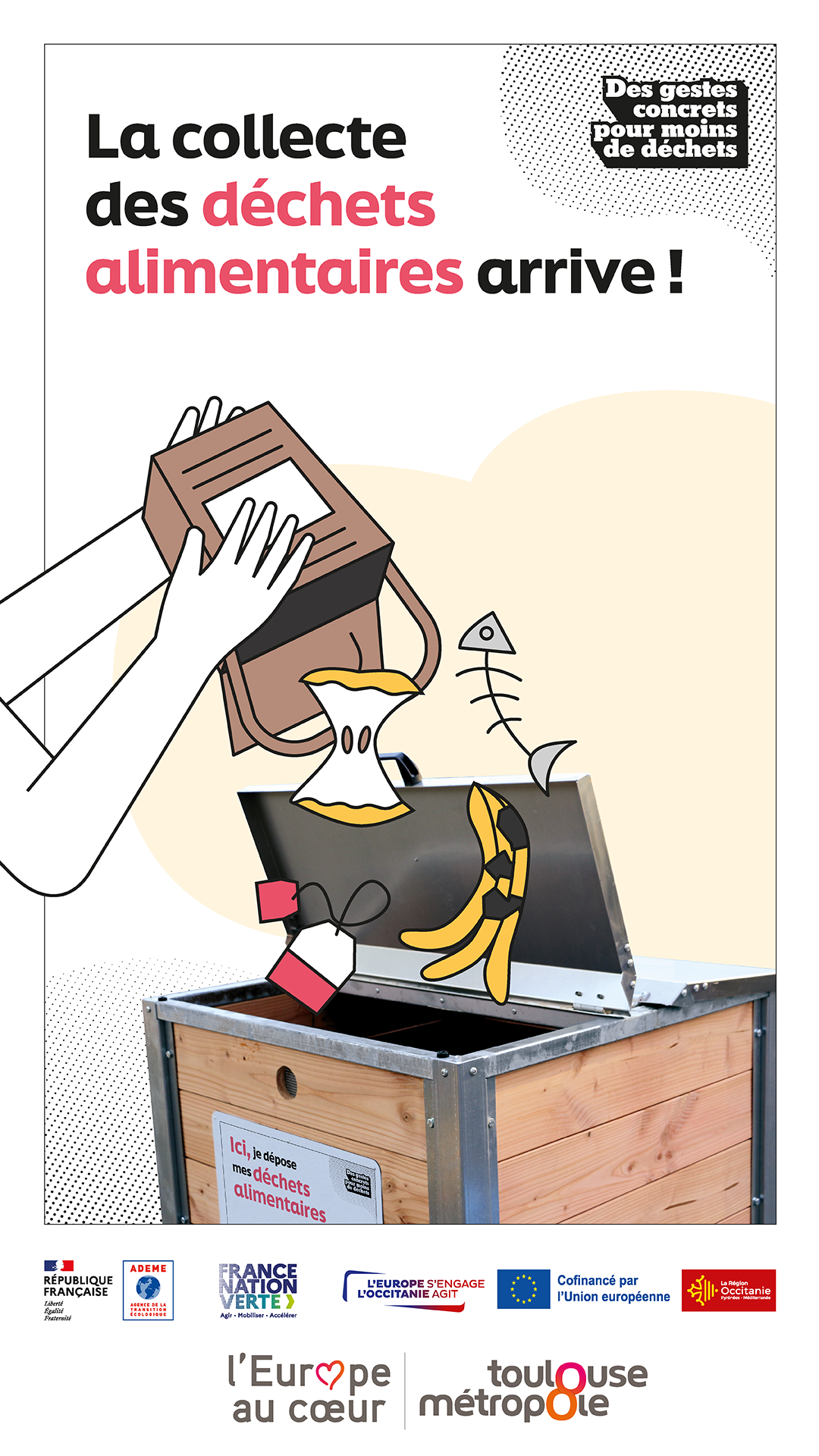 À partir du 30 janvier 2026, Toulouse Métropole déploie progressivement une nouvelle solution de tri. Des bornes de collecte sont installées sur l'espace public pour donner une seconde vie à vos restes alimentaires.