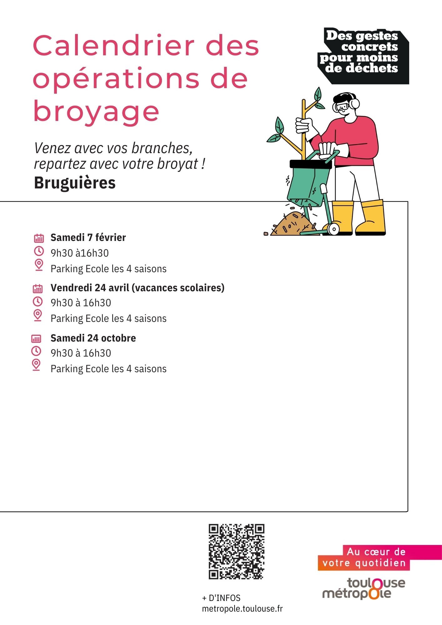 - Prêt de broyeurs avec l’entreprise Kiloutou (le plus proche au centre commercial de Fenouillet) ;