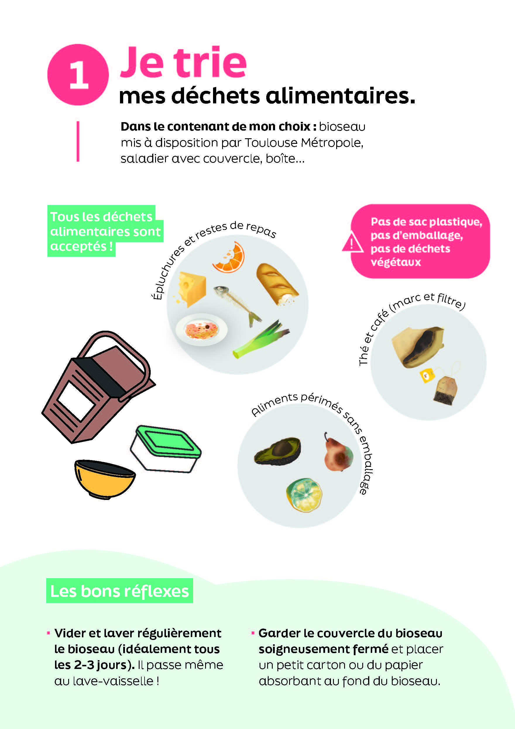 - Rincer et laver régulièrement votre bioseau.