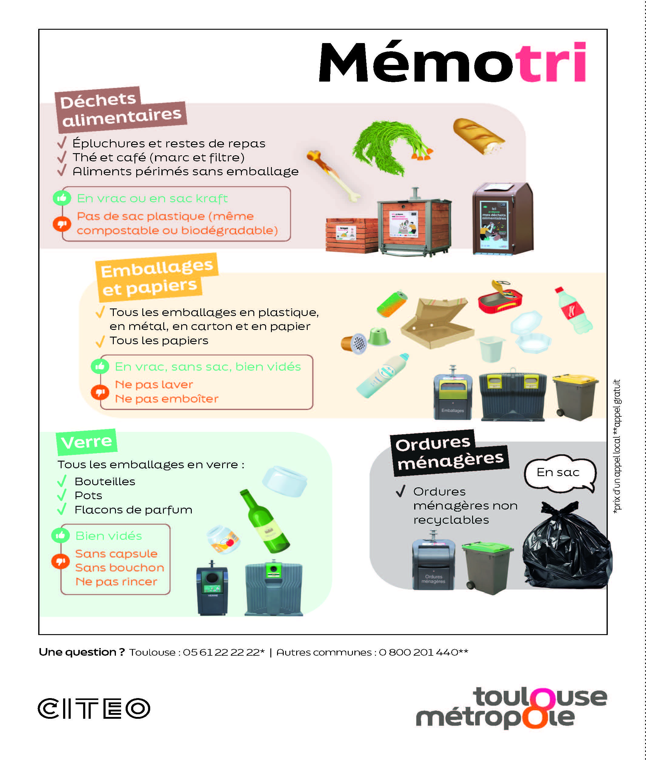 LA COLLECTE DES DECHETS EST ASSUREE PAR TOULOUSE METROPOLE, EN CAS DE SOUCIS VEUILLEZ PRENDRE CONTACT AVEC LEUR SERVICE IDOINE AU 0800 201 440 (Appel gratuit depuis un poste fixe).