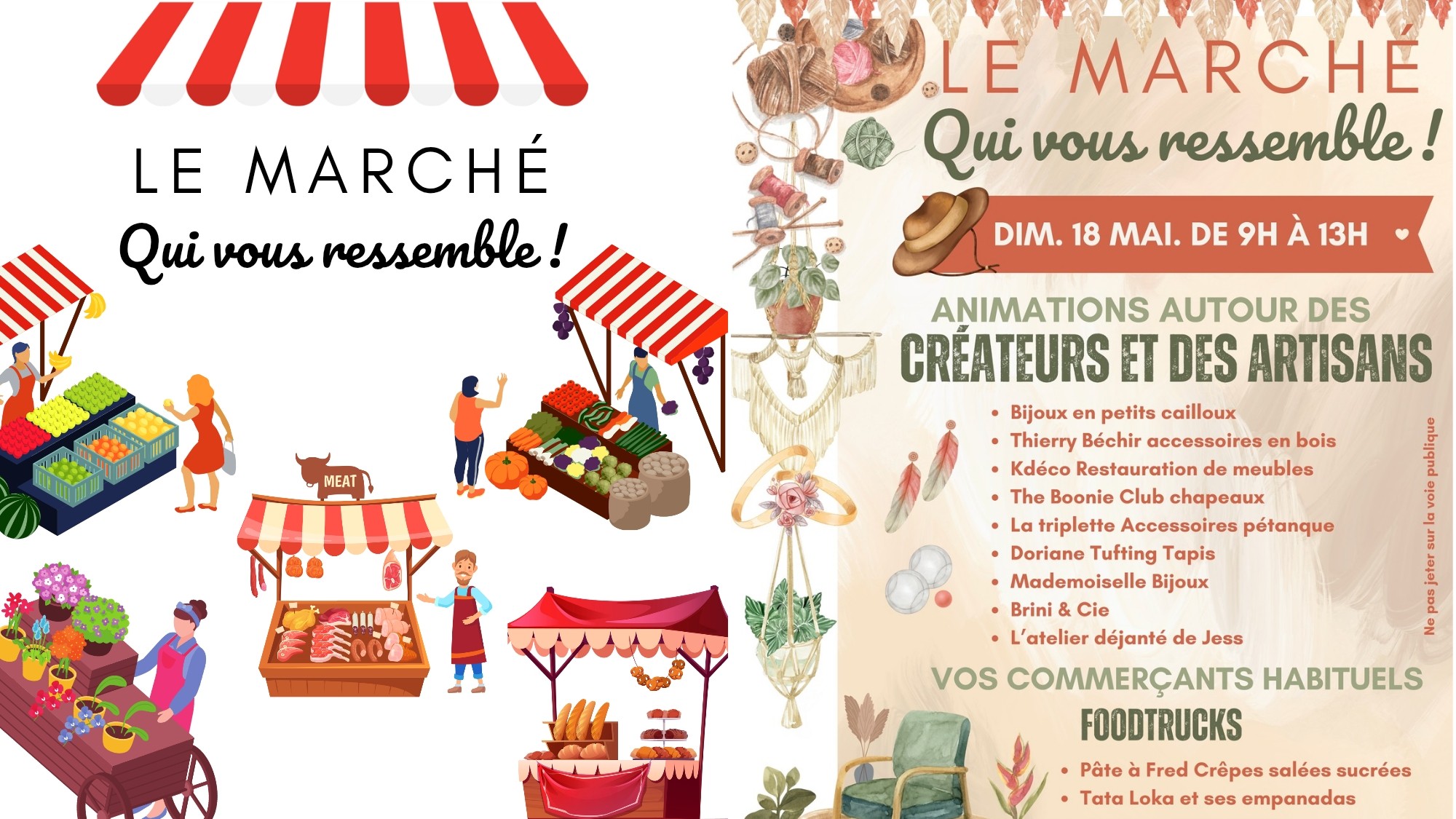 Venez découvrir les créations de @bijoux en petits cailloux et de @mademoiselle bijoux, les objets de décoration en bois de @Thierry Béchir, les meubles et accessoires restaurés de @K_déco, les chapeaux de @The Boonie Club, les tapis de @Doriane Tufting, les accessoires de pétanque @La Triplette, les sacs de @Brini